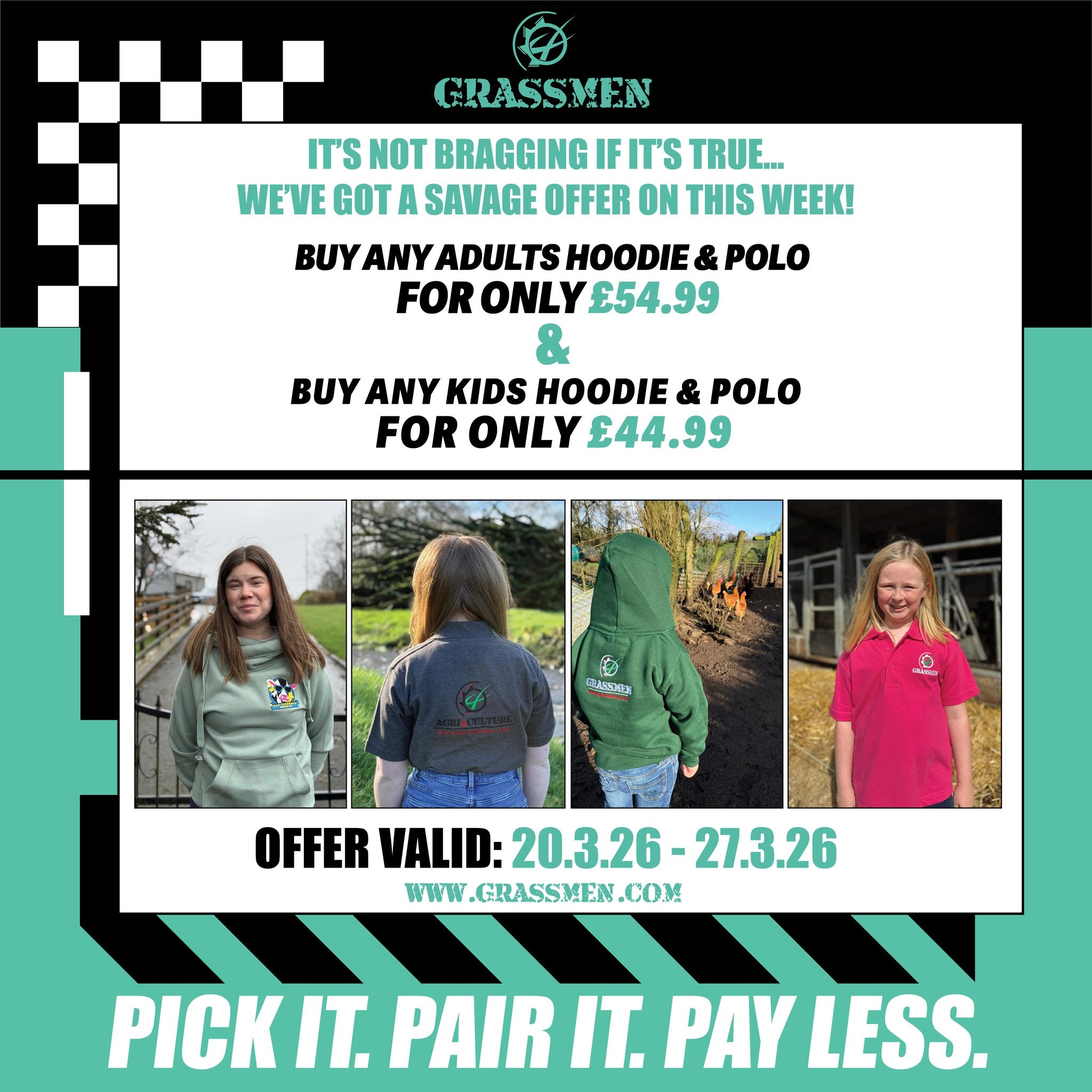 Offer valid 20th March - 27th March ONLY! Choose Any Adults Hoodie & Any Adults Polo Shirt for £54.99!