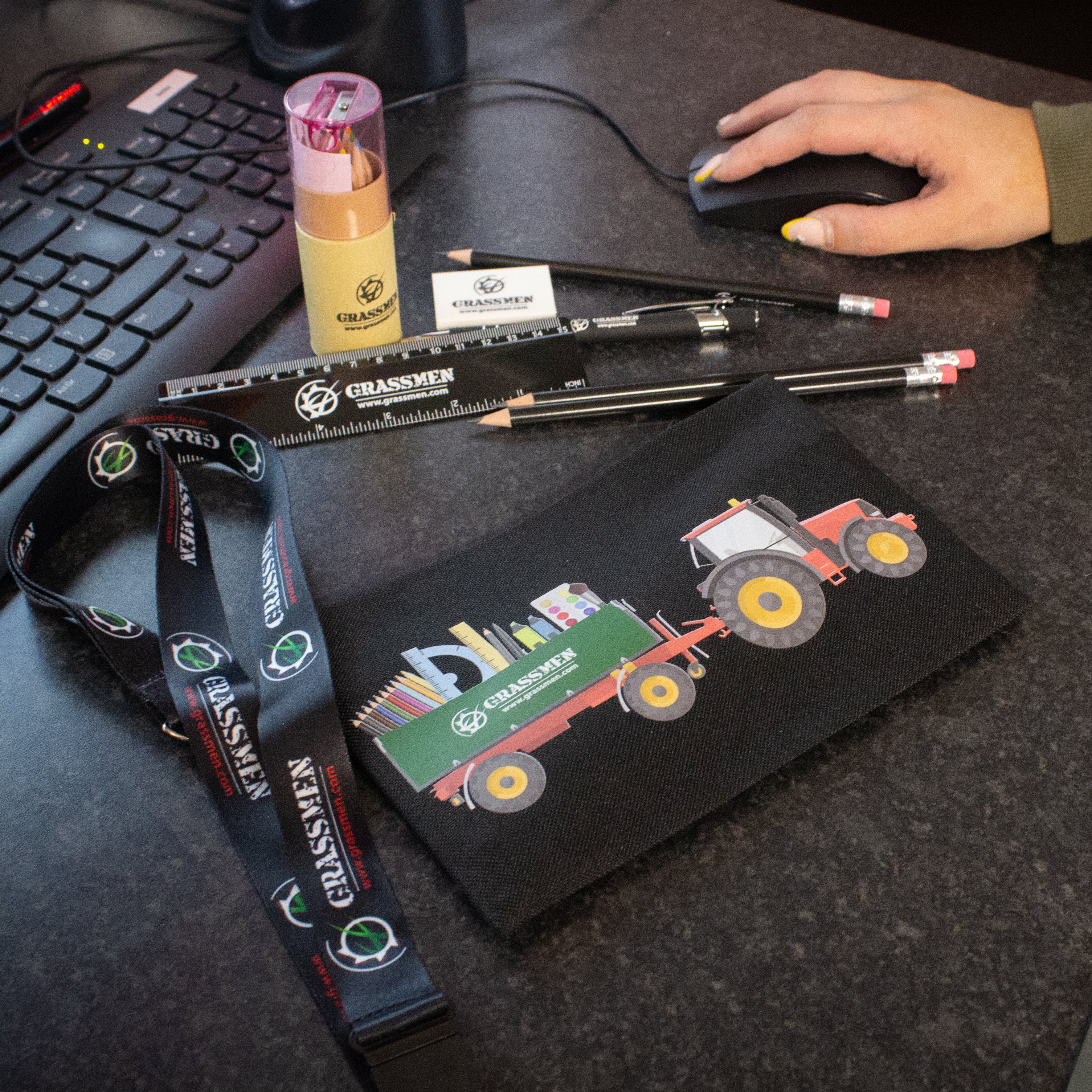 GRASSMEN pencil case complete with our tractor & trailer design to the rear & GRASSMEN branding to the front, the perfect addition to any stationary set.