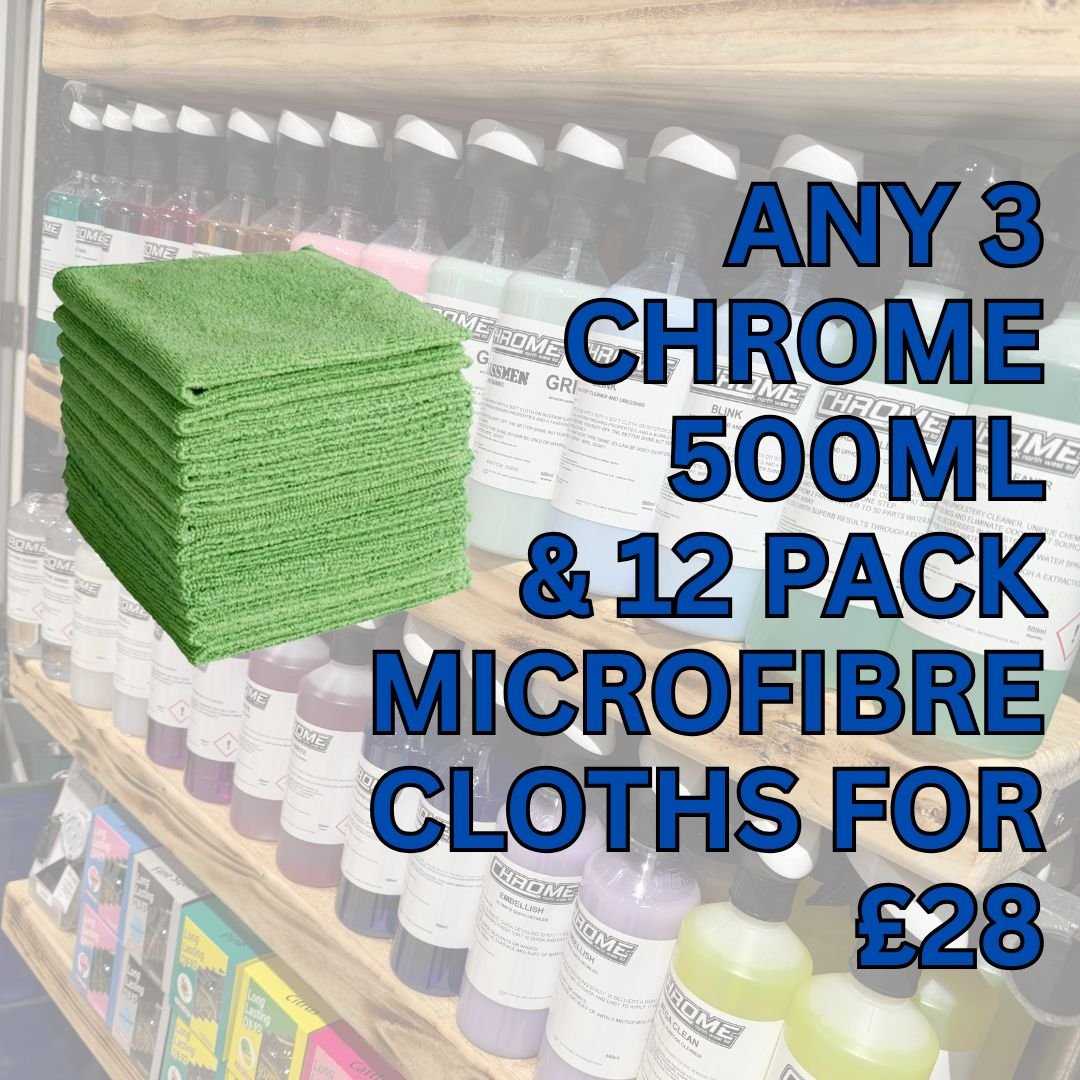 Grab any 3 Chrome 500ml products & a 12-pack of microfibre cloths for £28!