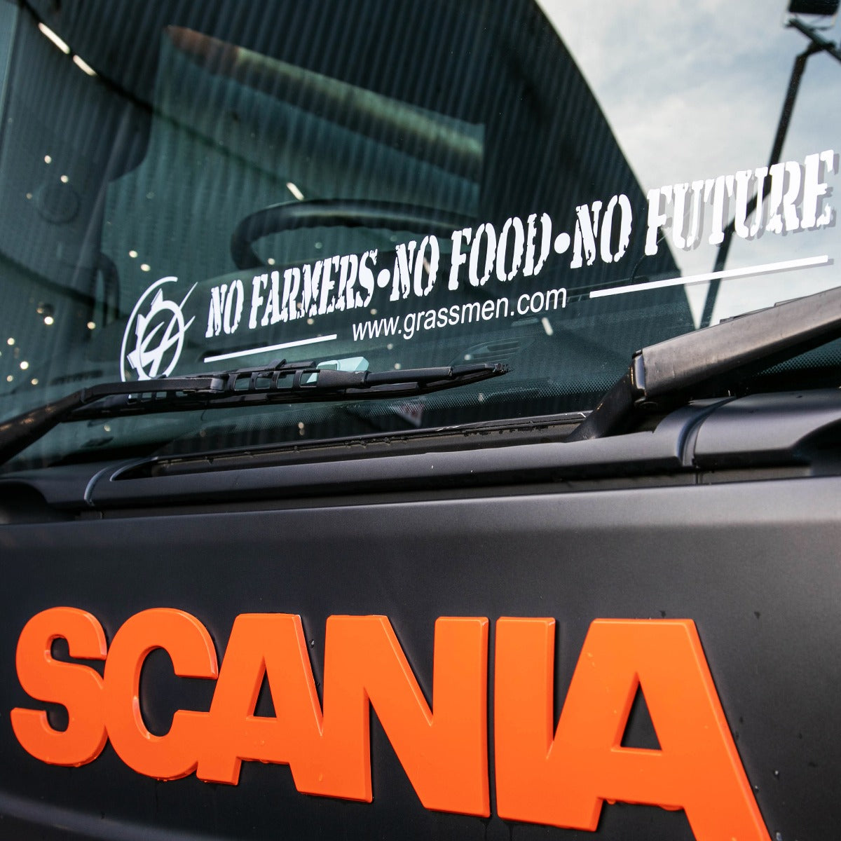 Official large external window graphic with our new slogan 'NO FARMERS. NO FOOD. NO FUTURE.'