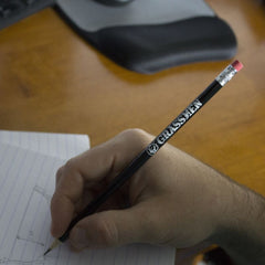 High quality black HB pencil with attached rubber on top and branded with our "GRASSMEN" logo.